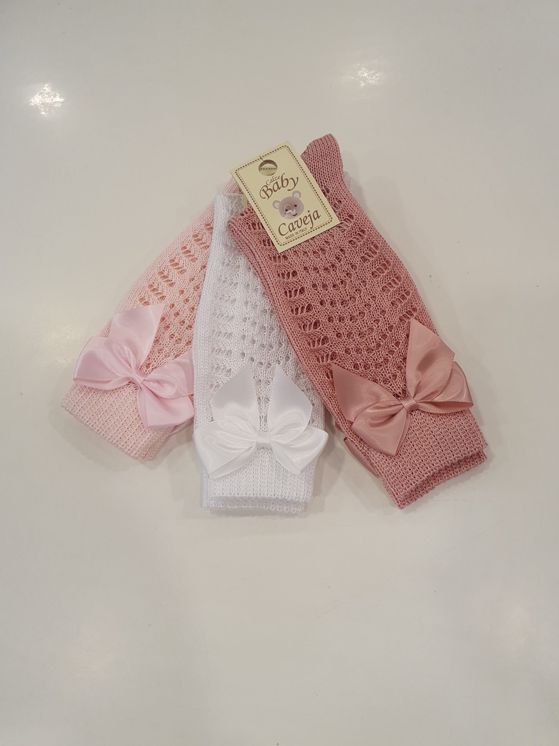 Calza bimba CAVEJA, lunga sotto ginocchio, con particolare fiocco e traforatura rifinita su tutta la calza, capo adatto a qualsiasi outfit