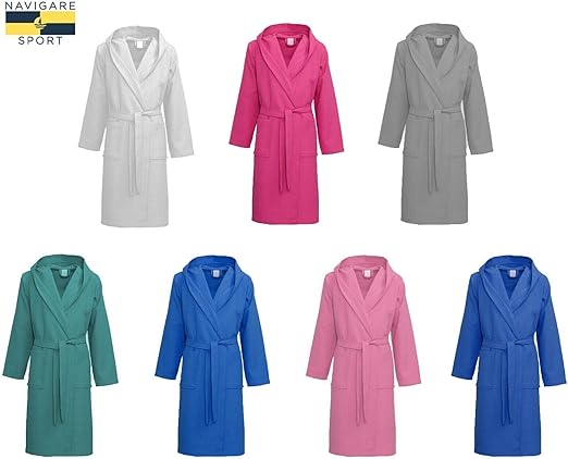 Accappatoio bimbi NAVIGARE SPORT in cotone nido d’ape con cappuccio. Disponibile in due colori e in diverse misure.