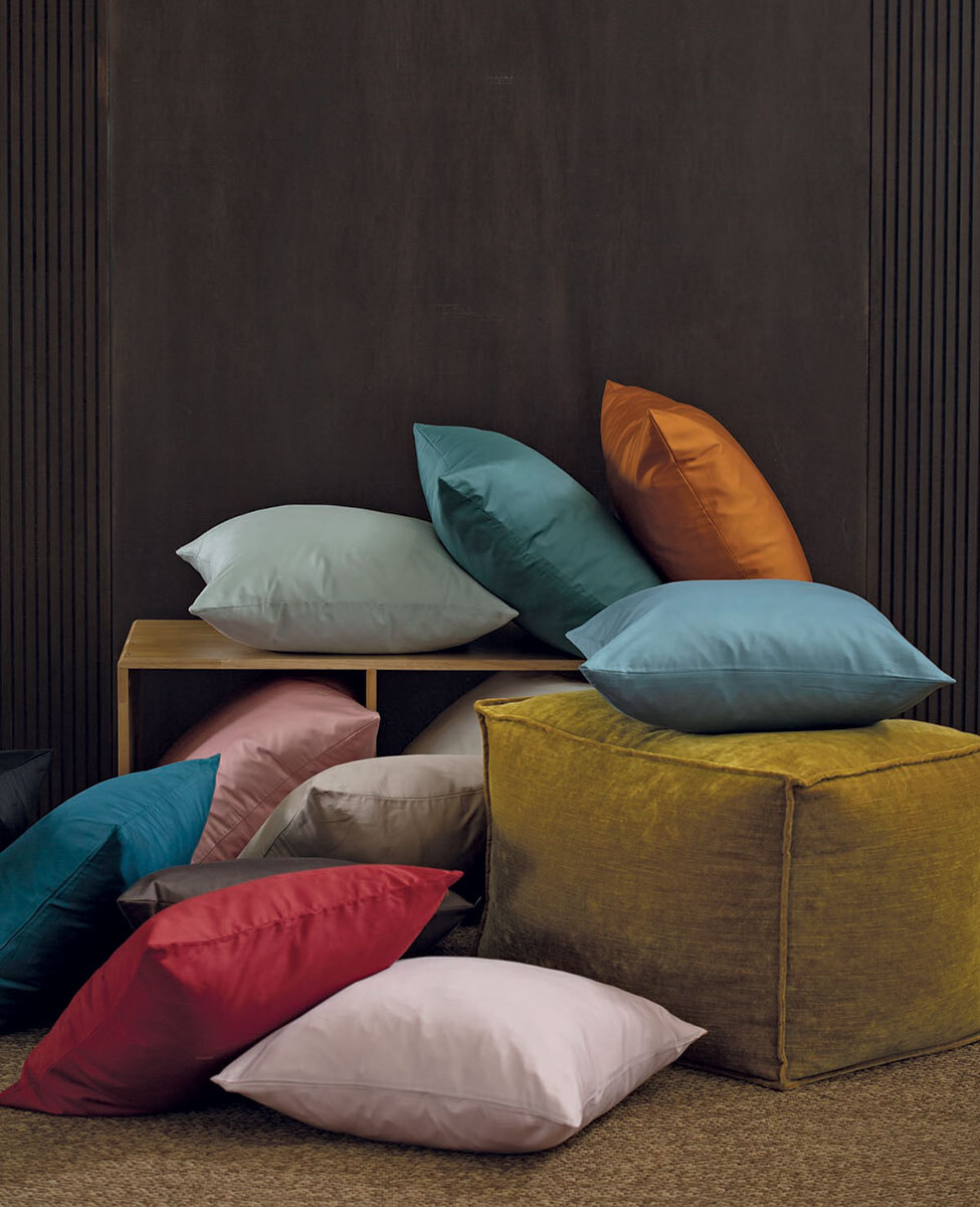 Cuscino arredo sfoderabile in raso di cotone tinta unita.