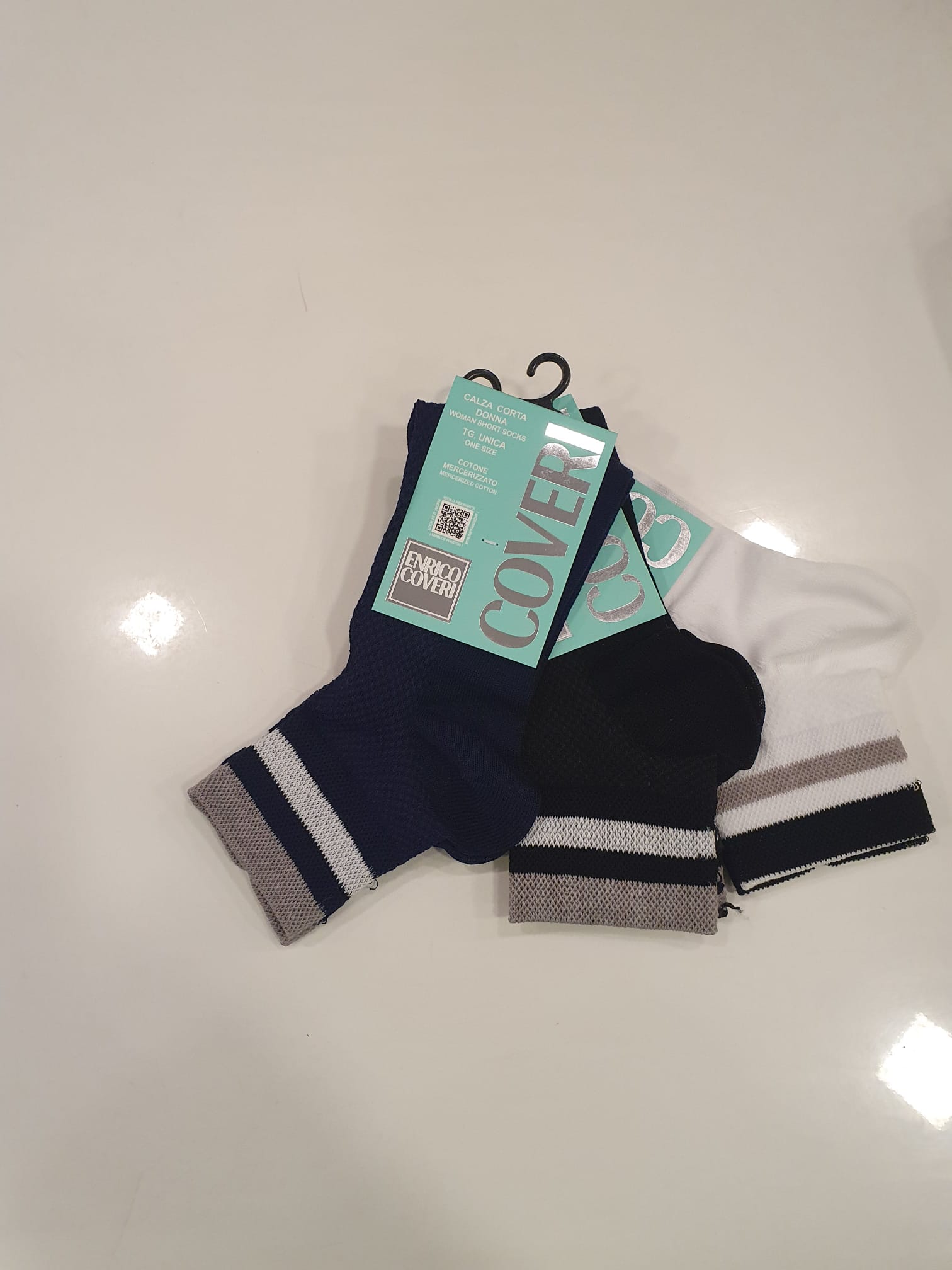 Calza donna ENRICO COVERI modello a caviglia, in tessuto cotone mercerizzato elasticizzato, capo anallergico adatto a tutti i tipi di pelle, morbido, compatto ma allo stesso tempo confortevole e con un prezzo speciale