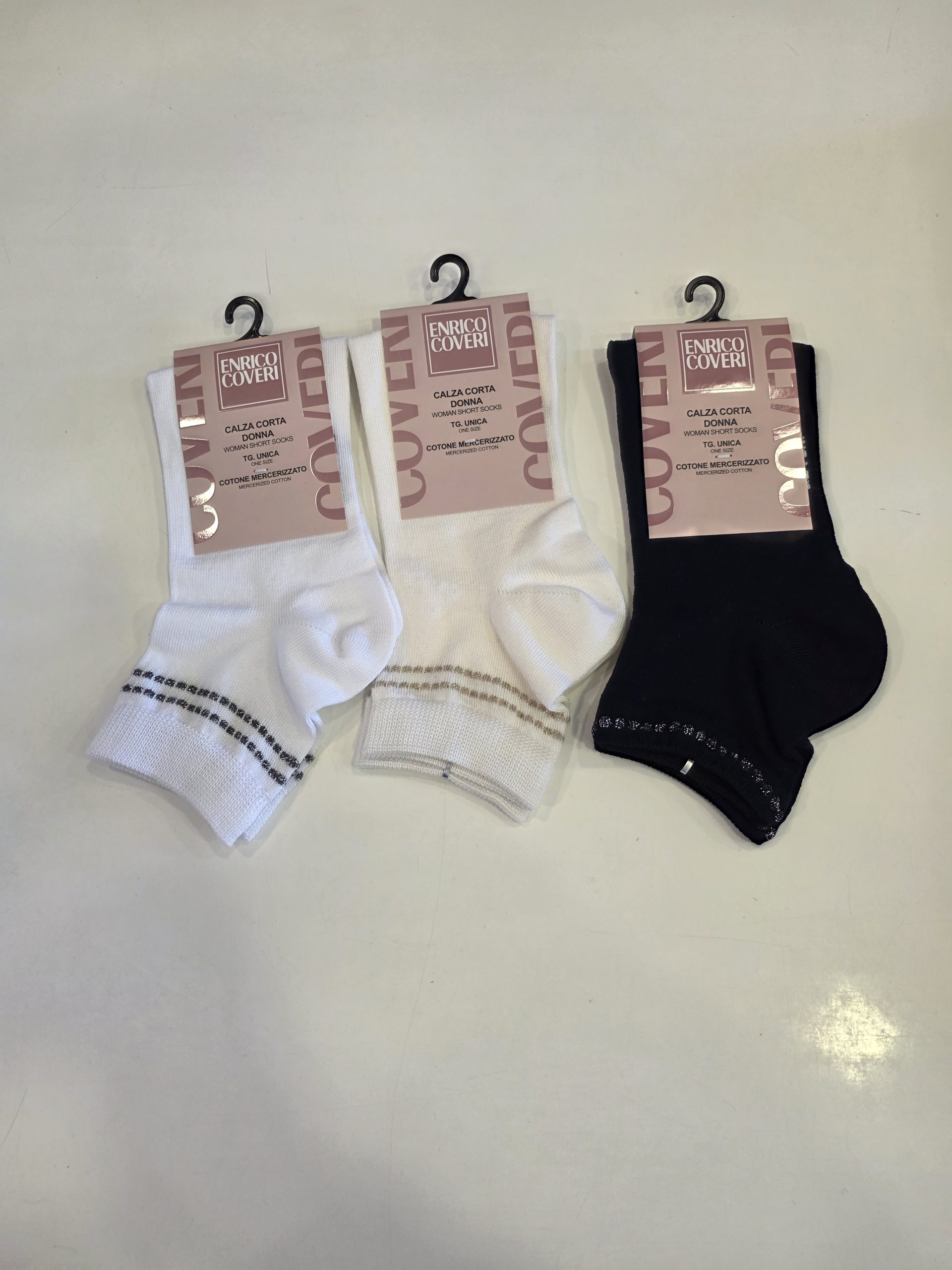 Calza donna ENRICO COVERI modello a caviglia, in tessuto cotone mercerizzato elasticizzato, capo anallergico adatto a tutti i tipi di pelle, morbido, compatto ma allo stesso tempo confortevole e con un prezzo speciale