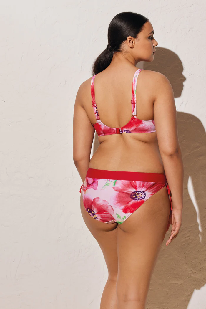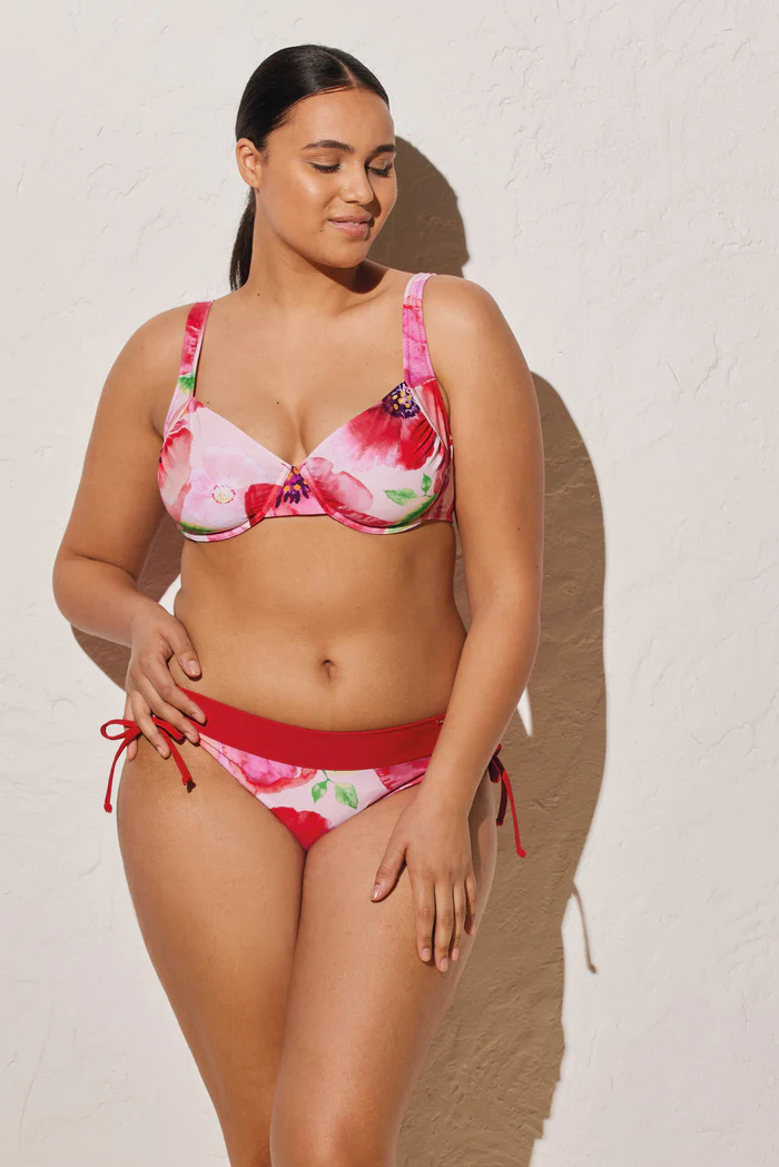 Bikini YSABEL MORA con ferretto e coppa E sfoderata. Il top con ferretto e spalline larghe fisse offre un perfetto sostegno al seno. Ha una chiusura a moschettone per garantire comfort e naturalezza. Include slip midi.