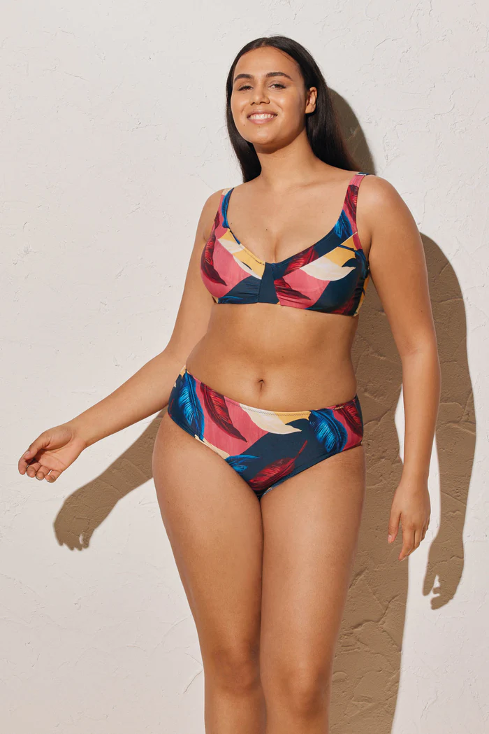 Bikini YSABEL MORA con ferretto e coppa E sfoderata. Il top con ferretto offre un sostegno perfetto al seno. Include spalline posteriori multiposizione e spalline regolabili per un maggiore sostegno. Incorpora una chiusura a fibbia per un maggiore comfort e naturalezza. Include slip a vita alta.