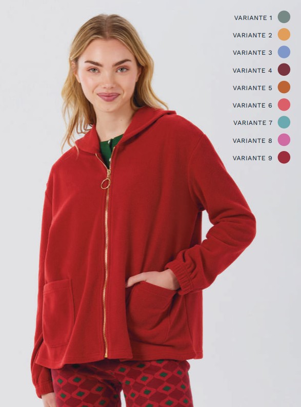 Giacca donna con zip e tasche BRILLIAMO, ottimo prodotto, tessuto pile, capo morbido, caldo e speciale anche nelle forme e nei tagli costruiti alla perfezione, capo per chi vuole il massimo su tessuti e vestibilità. Abbinabile con il suo pigiama, che troverete nella sezione donna pigiami autunno-inverno.