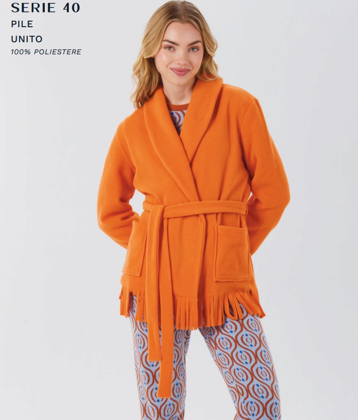 Giacca donna con cintura e tasche BRILLIAMO, ottimo prodotto, tessuto pile, capo morbido, caldo e speciale anche nelle forme e nei tagli costruiti alla perfezione, capo per chi vuole il massimo su tessuti e vestibilità. Abbinabile con il suo pigiama, che troverete nella sezione donna pigiami autunno-inverno.