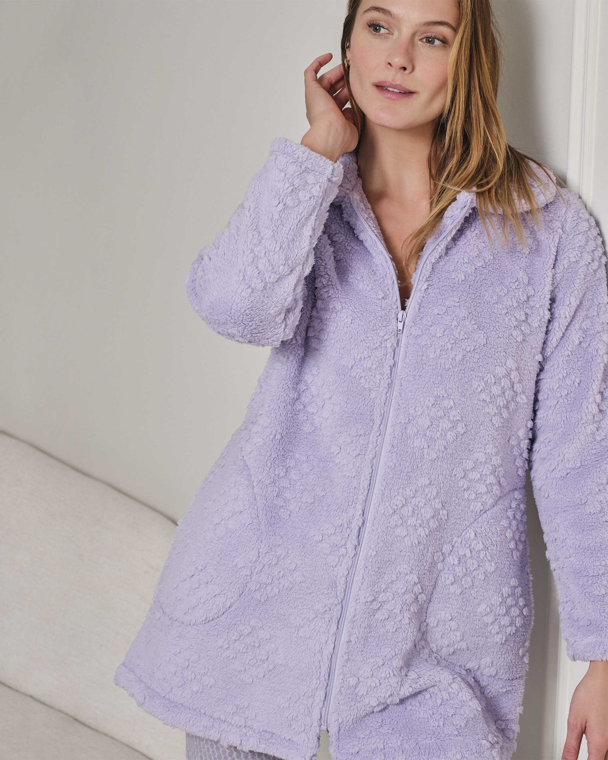Giacca donna MASSANA, con zip e tasche, tessuto ciniglia. Capo bello, morbido, caldo e confortevole, per restare in casa con un outfit sportivo.