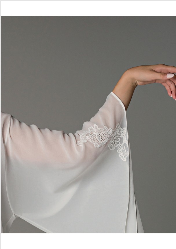 Compose AMALUNA elegante per sposa, composto dal kimono con la sua sottoveste che trovi nella stessa scatola rifiniti con un magnifico pizzo macramè, prodotto di estrema eleganza e bellezza adatto per uno dei giorni più belli della vostra vita, capo unico per stile e qualità