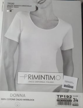 Maglia donna PRIMINTIMO, mezza manica a girocollo con bordino in raso realizzata in cotone interlock.