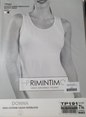 Canottiera donna PRIMINTIMO, a spalla larga girocollo con bordino in raso realizzata in cotone interlock.