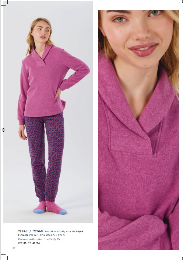 Pigiama donna BRILLIAMO, collo alto, maglia scollo a cuore e senza bottoni. Ottimo prodotto, tessuto punto milano jacquard, capo morbido, caldo e speciale anche nelle forme e nei tagli costruiti alla perfezione, capo per chi vuole il massimo su tessuti e vestibilità.