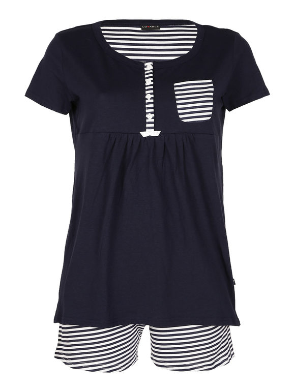 Pigiama donna LOVABLE con maglia a mezza manica ed un fantastico disegno con pantaloncino a righe, fibre naturali, capo molto sportivo, prodotto di altissima qualità ad un prezzo eccezionale