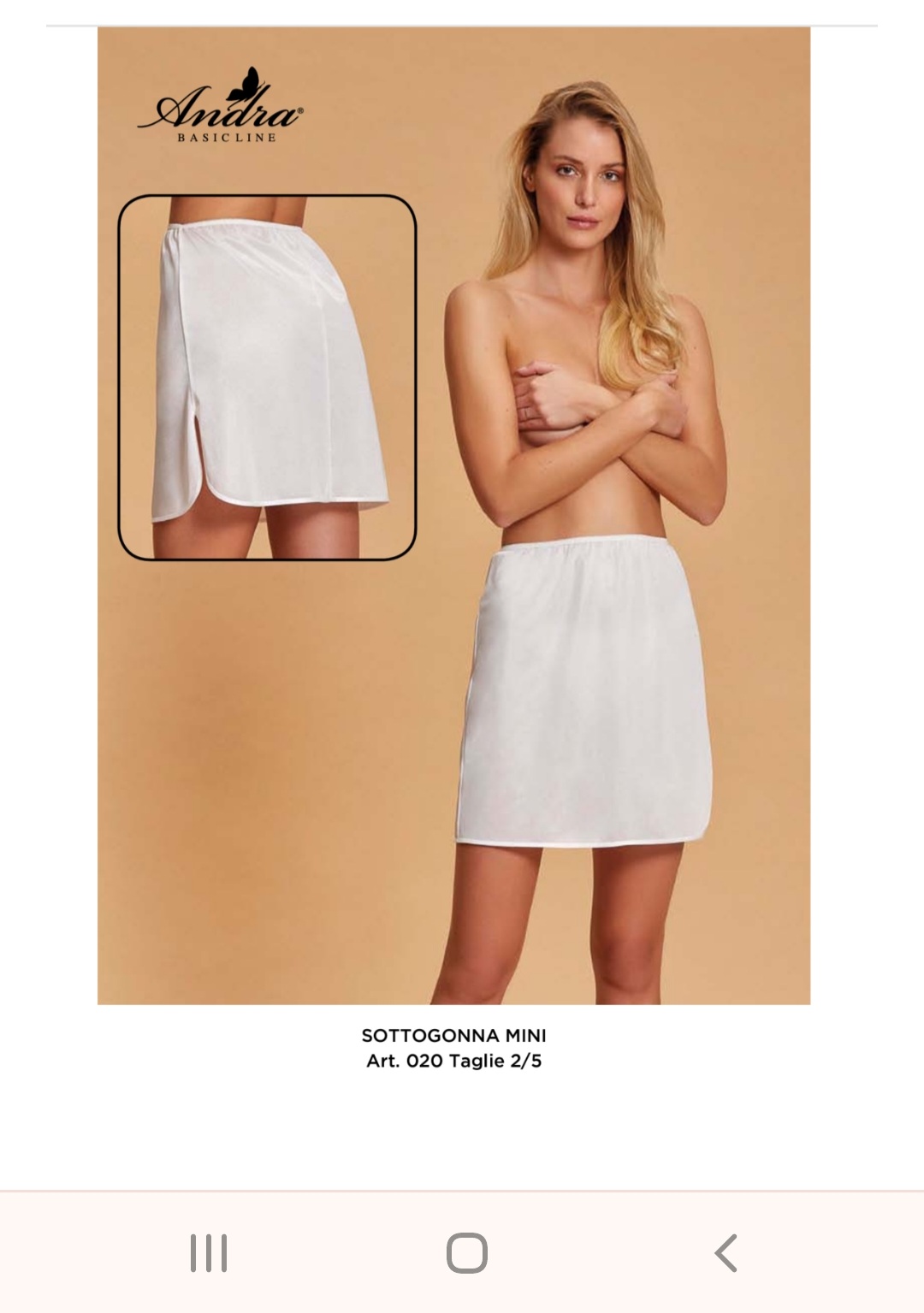 Sottogonna ANDARA linea classic, tessuto raso lucido, un prodotto senza tempo, anallergico con vestibilità ampia versione corta