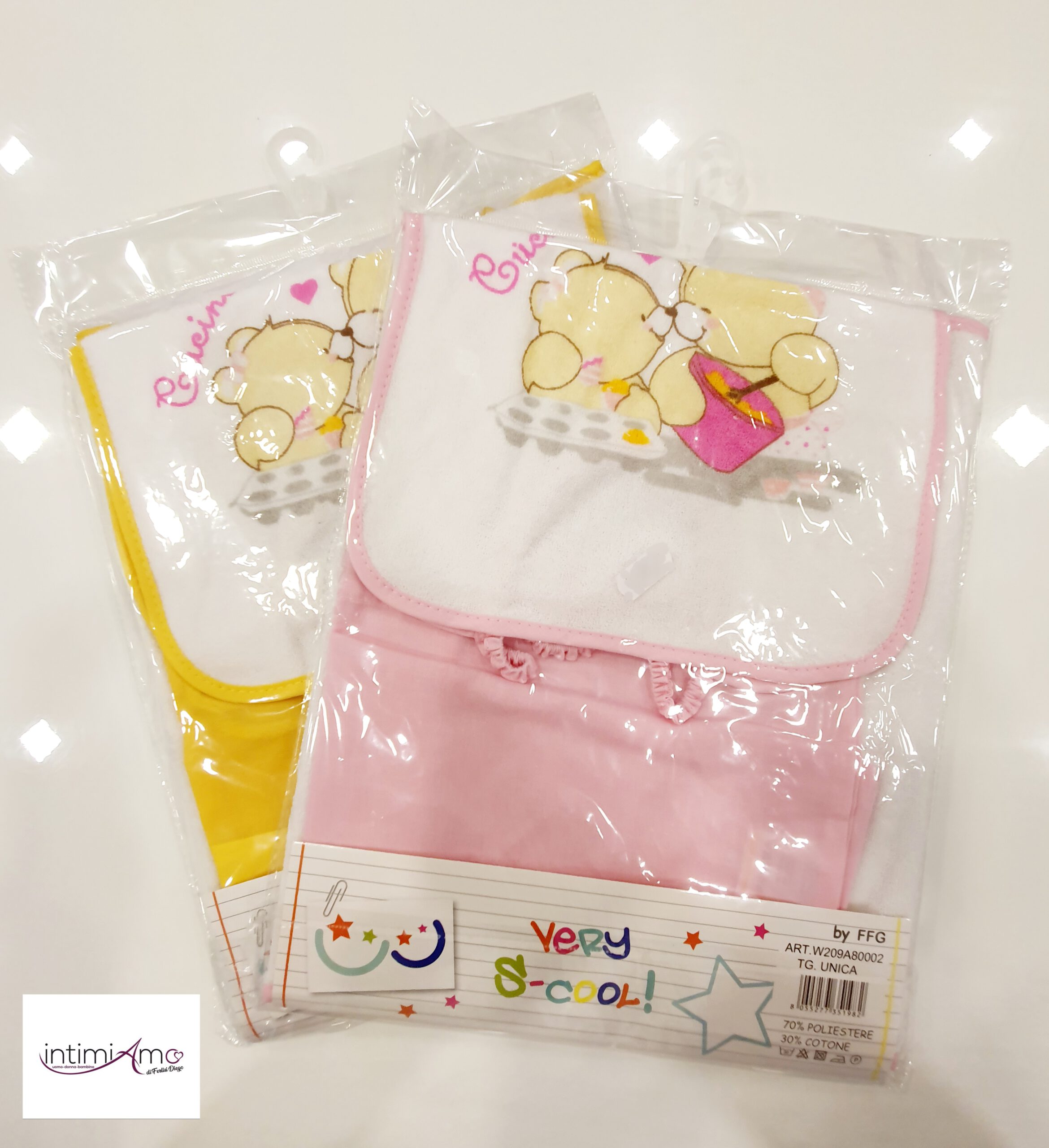 Tris scuola bimbi, all’interno si trova una tovaglietta, un bavaglino e un sacchetto tutti rifiniti con lo stesso colore, ordine , igiene e pulizia in questo tris molto dinamico adatto per i più piccoli