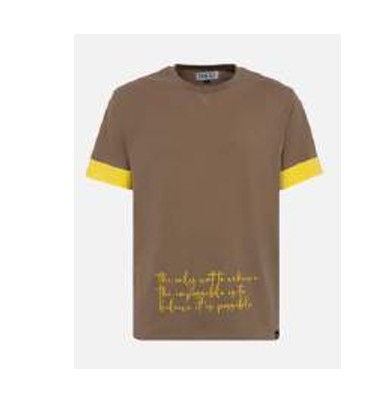 T-shirt girocollo in fresco cotone con maniche corte. con aerografia stampata